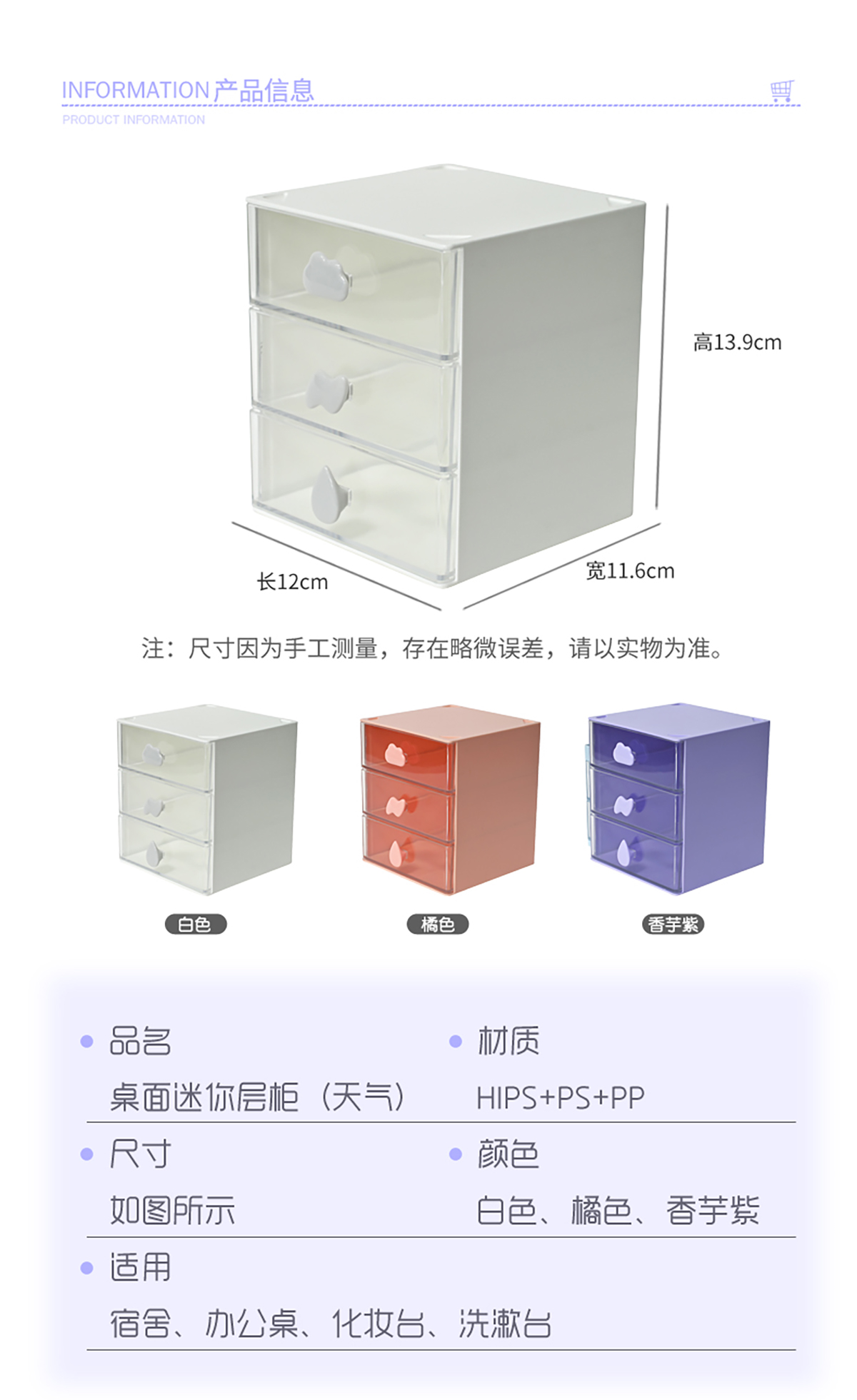 Remarks:白色 橘色 香芋紫