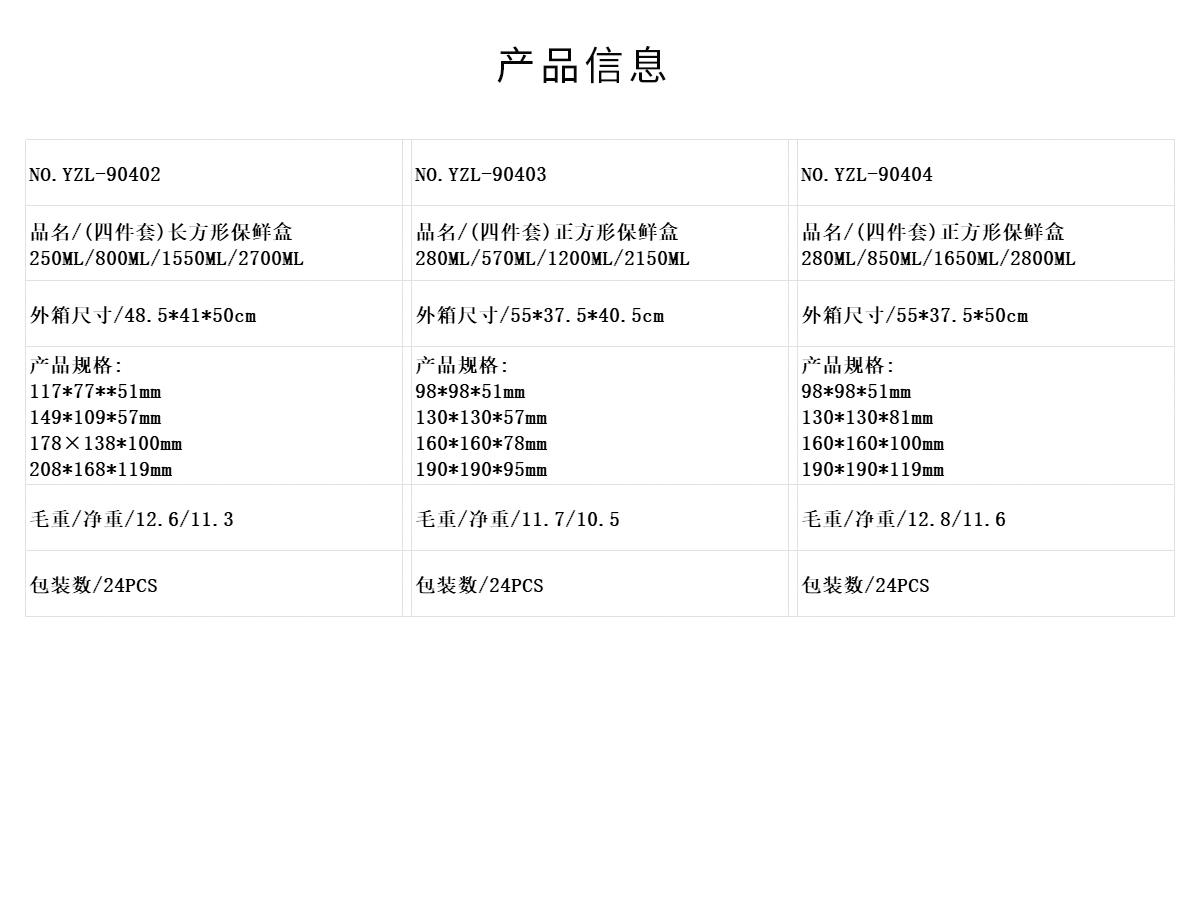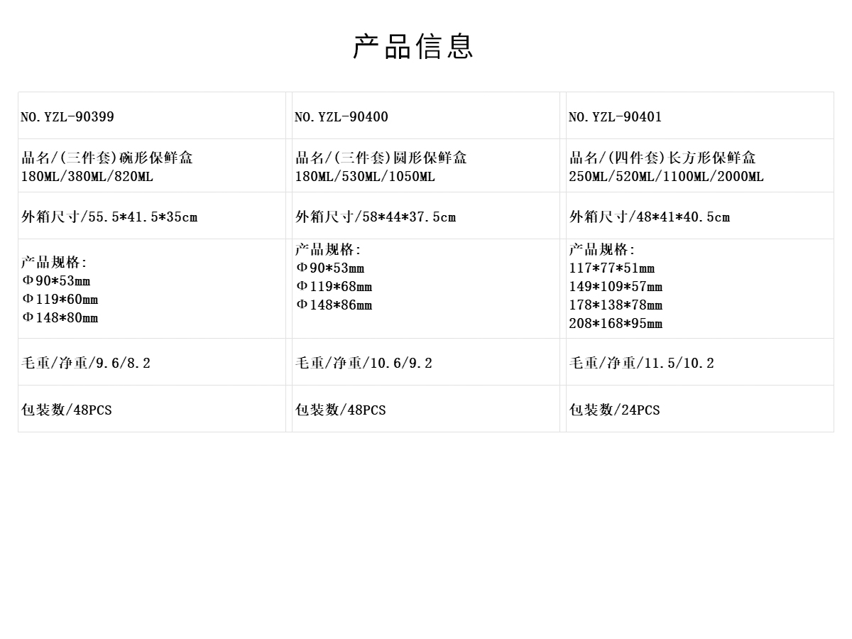 (三件/四件套)碗形/圓形/長方形/正方形保鮮盒