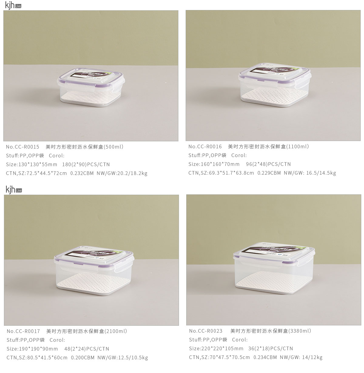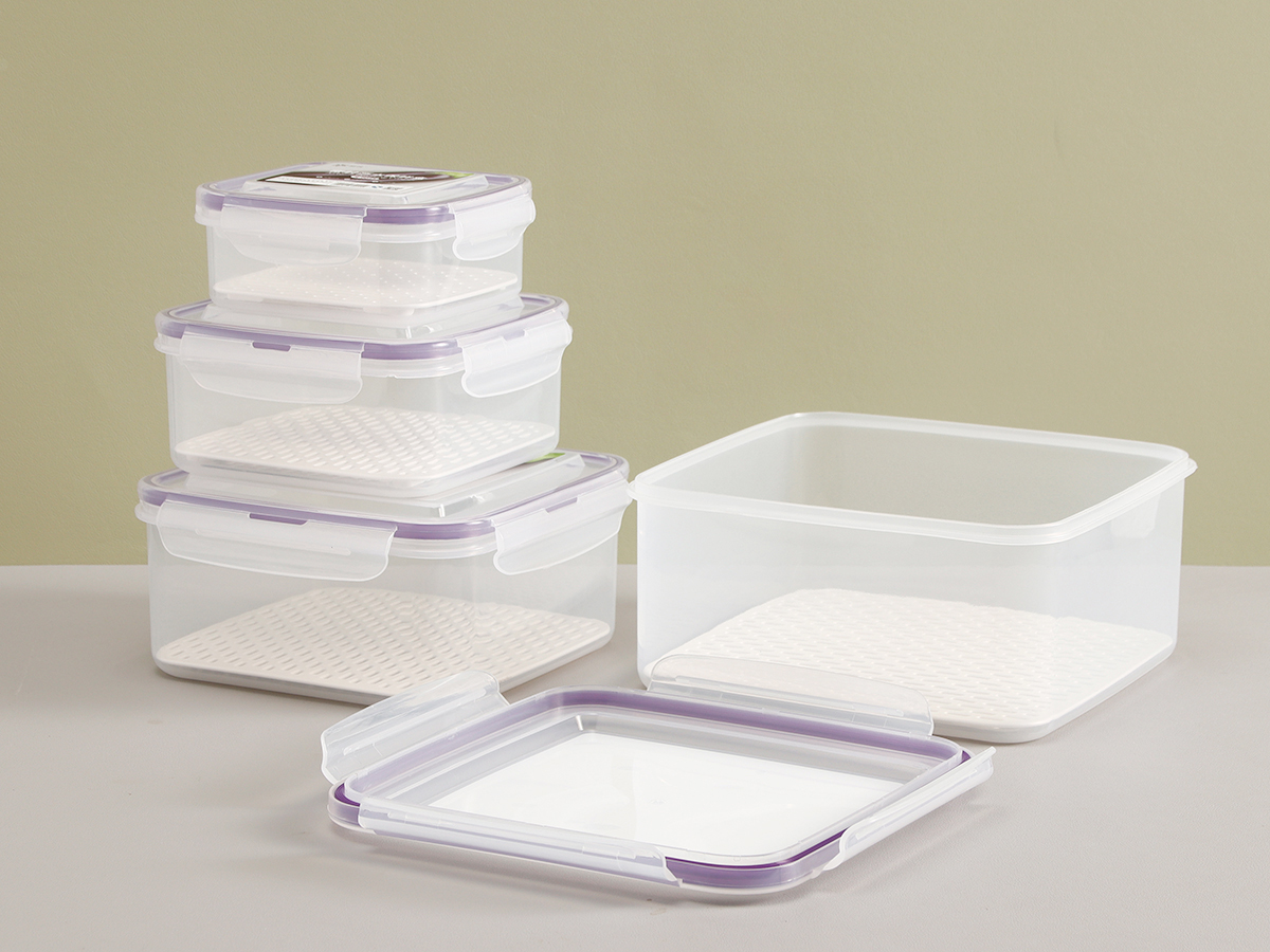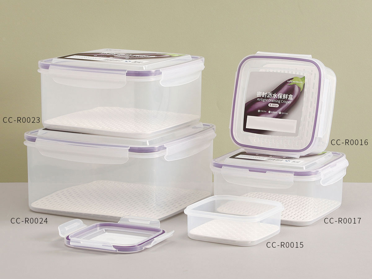 美時(shí)方形密封瀝水保鮮盒(500ml/1100ml/2100ml/3380ml/5250ml)