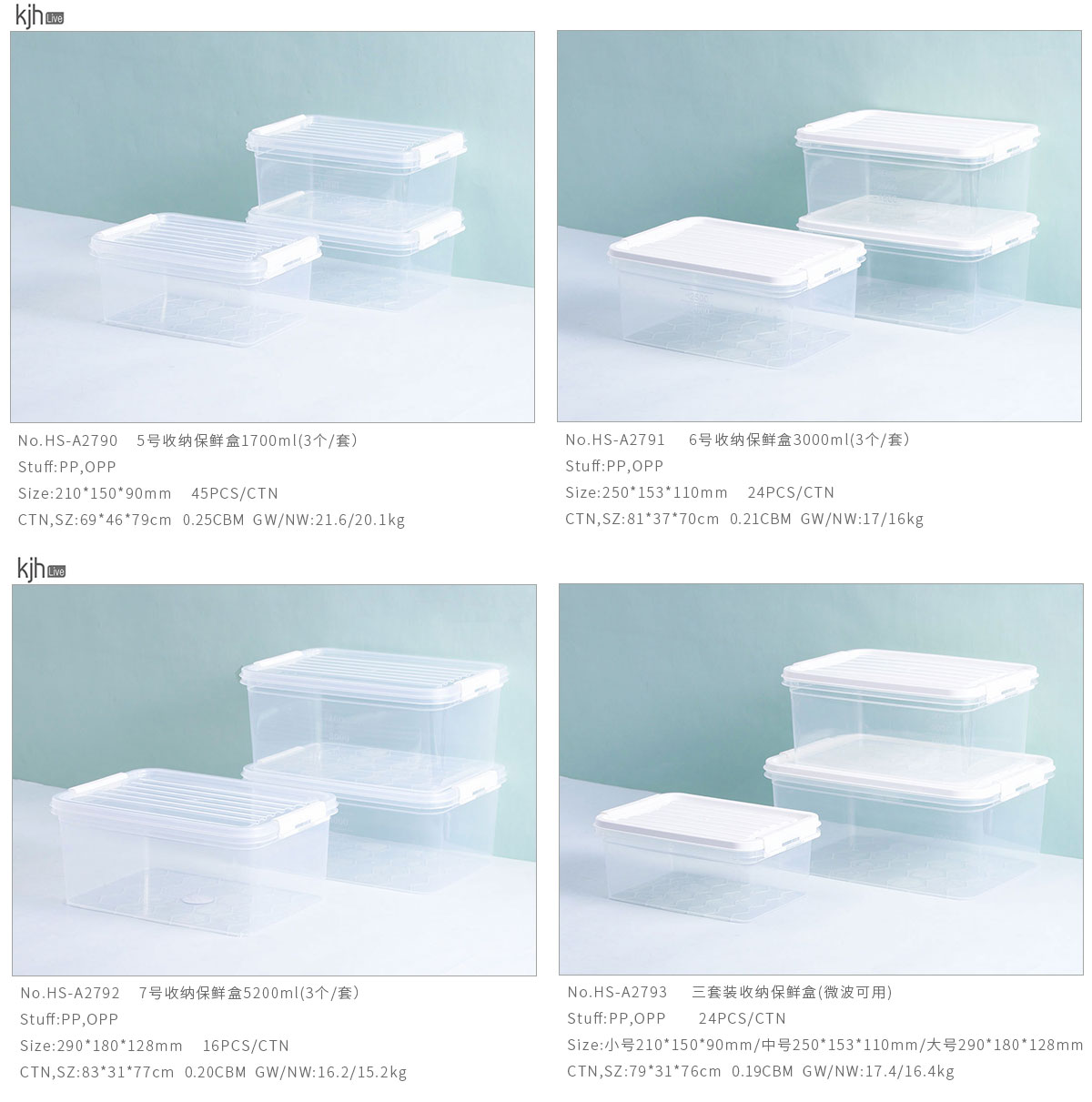 收納保鮮盒1700ml/3000ml/5200ml/三套裝(3個(gè)/套)