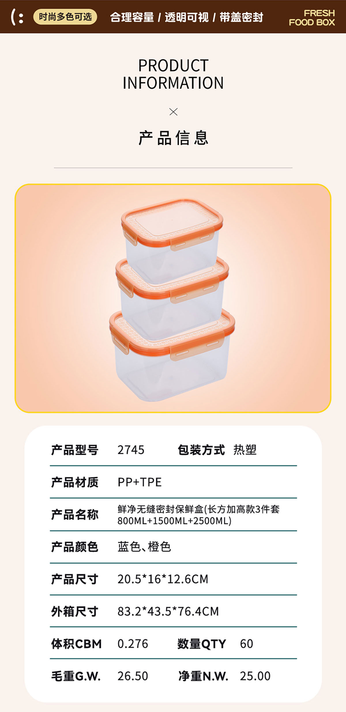 AQX-2745:205*160*126mm/長方加高款3件800ml+1500ml+2500ml