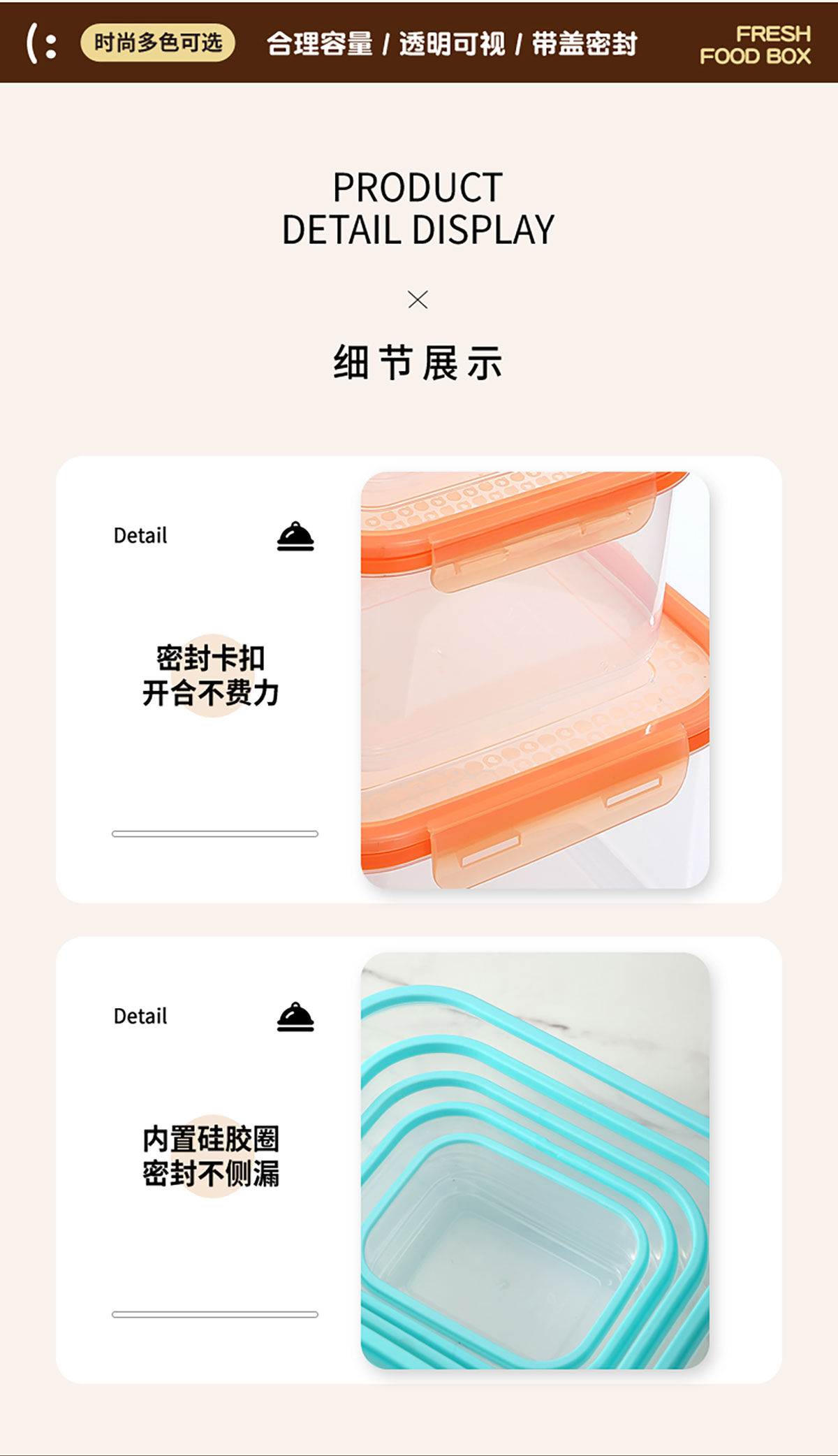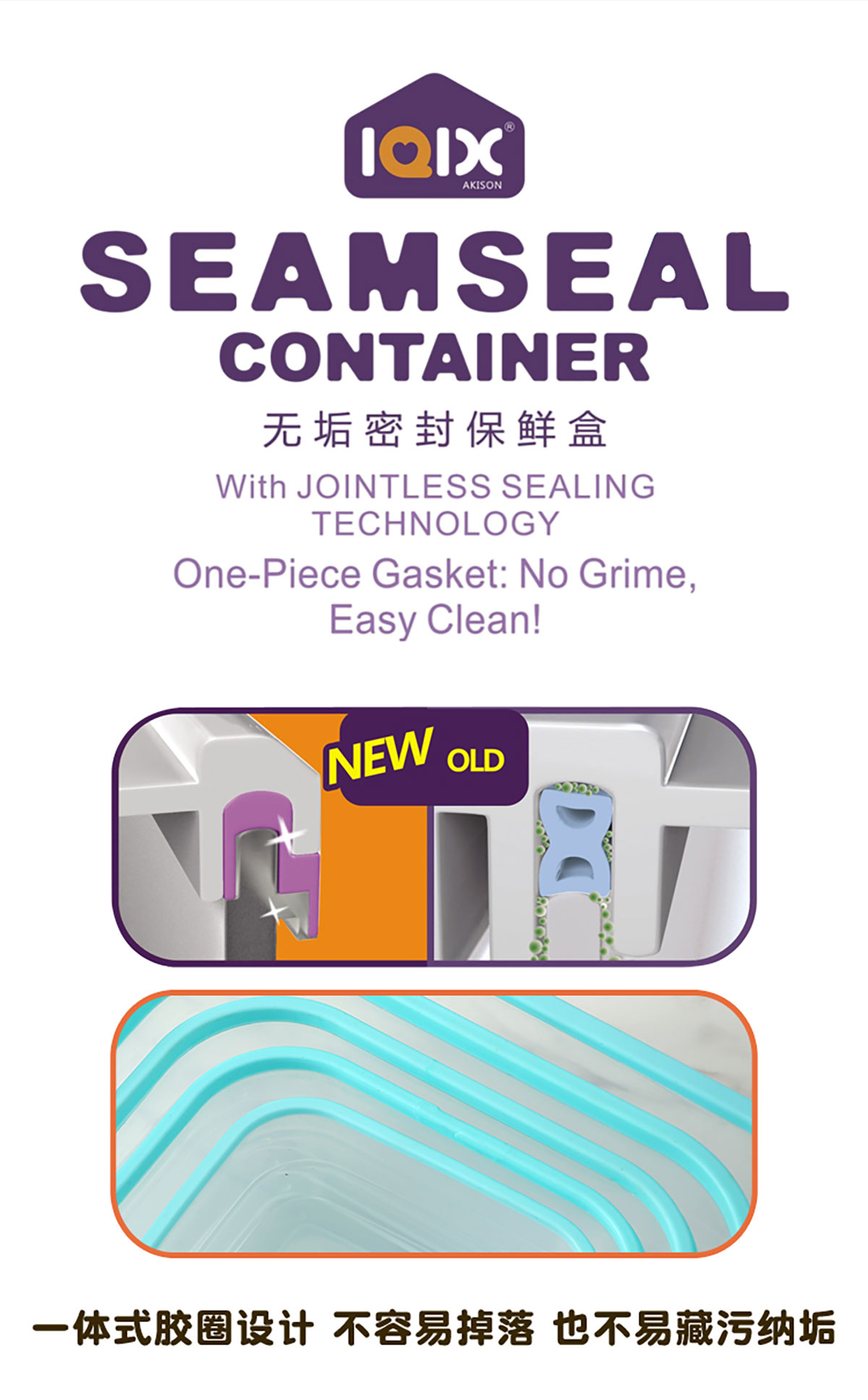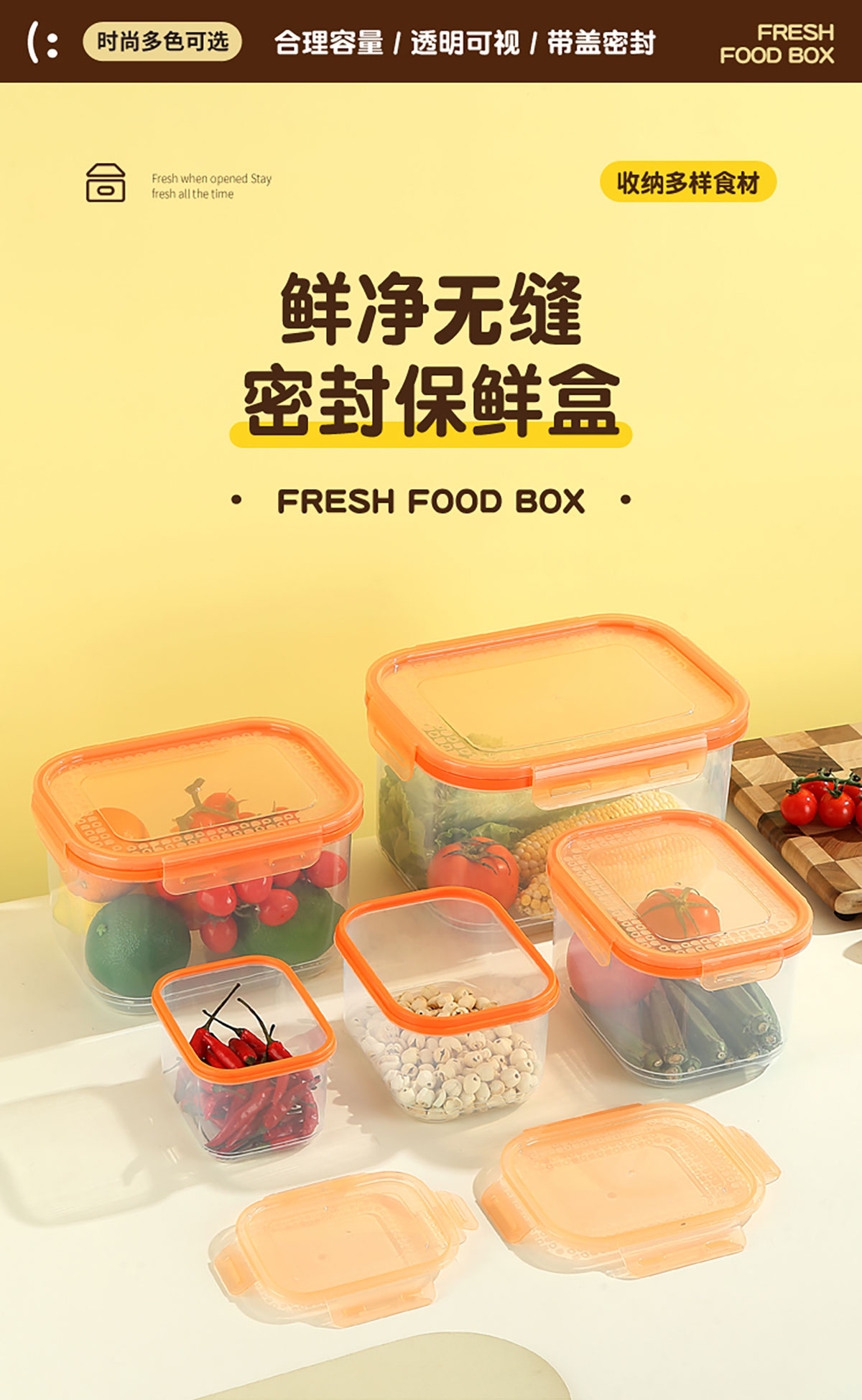 鮮凈無縫密封保鮮盒(長方加高款3件套/5件套)