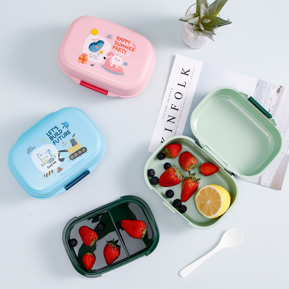 童彩翻蓋便當盒+運動水壺套裝(長方形/正方形1000ml+水杯350ml)