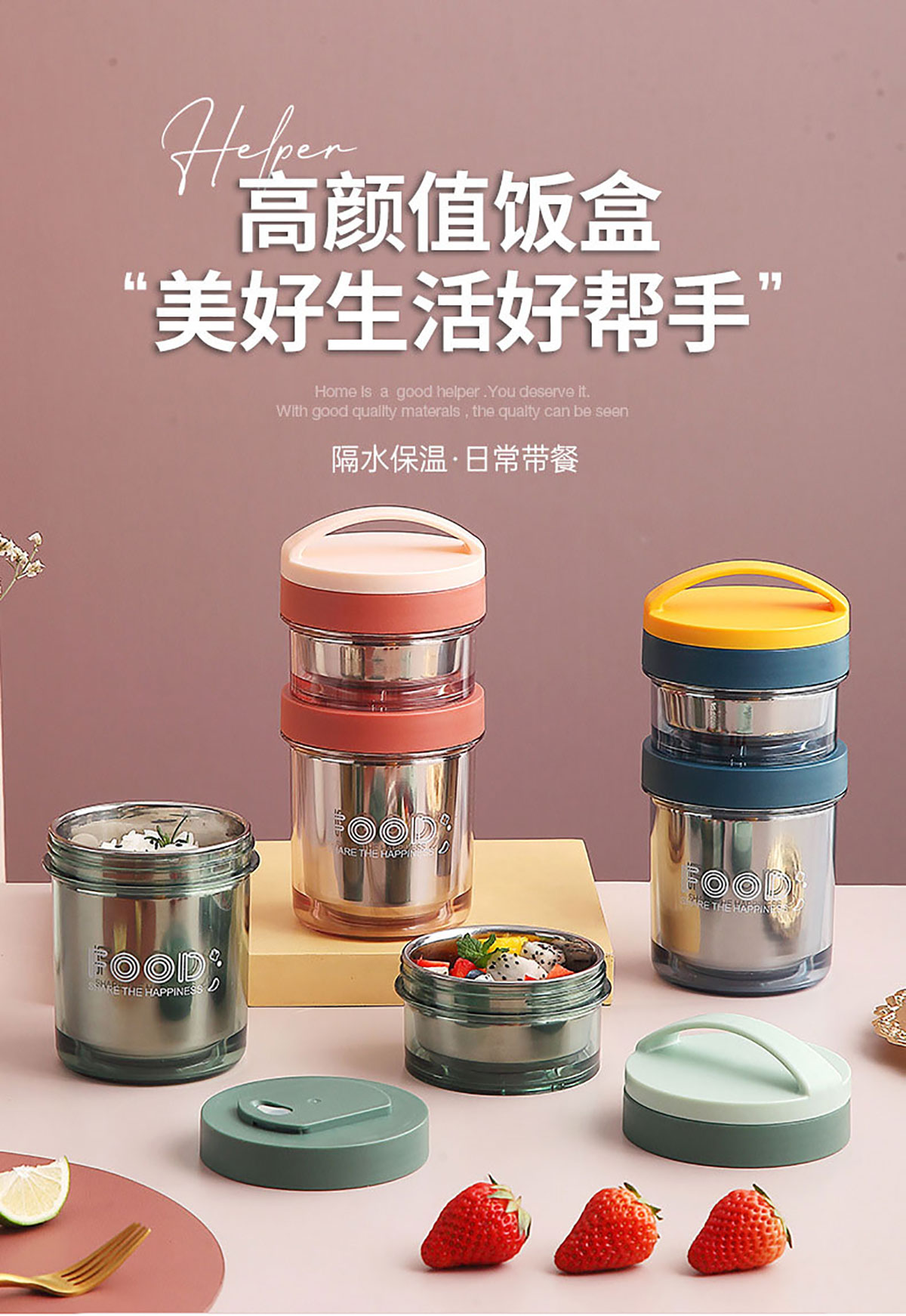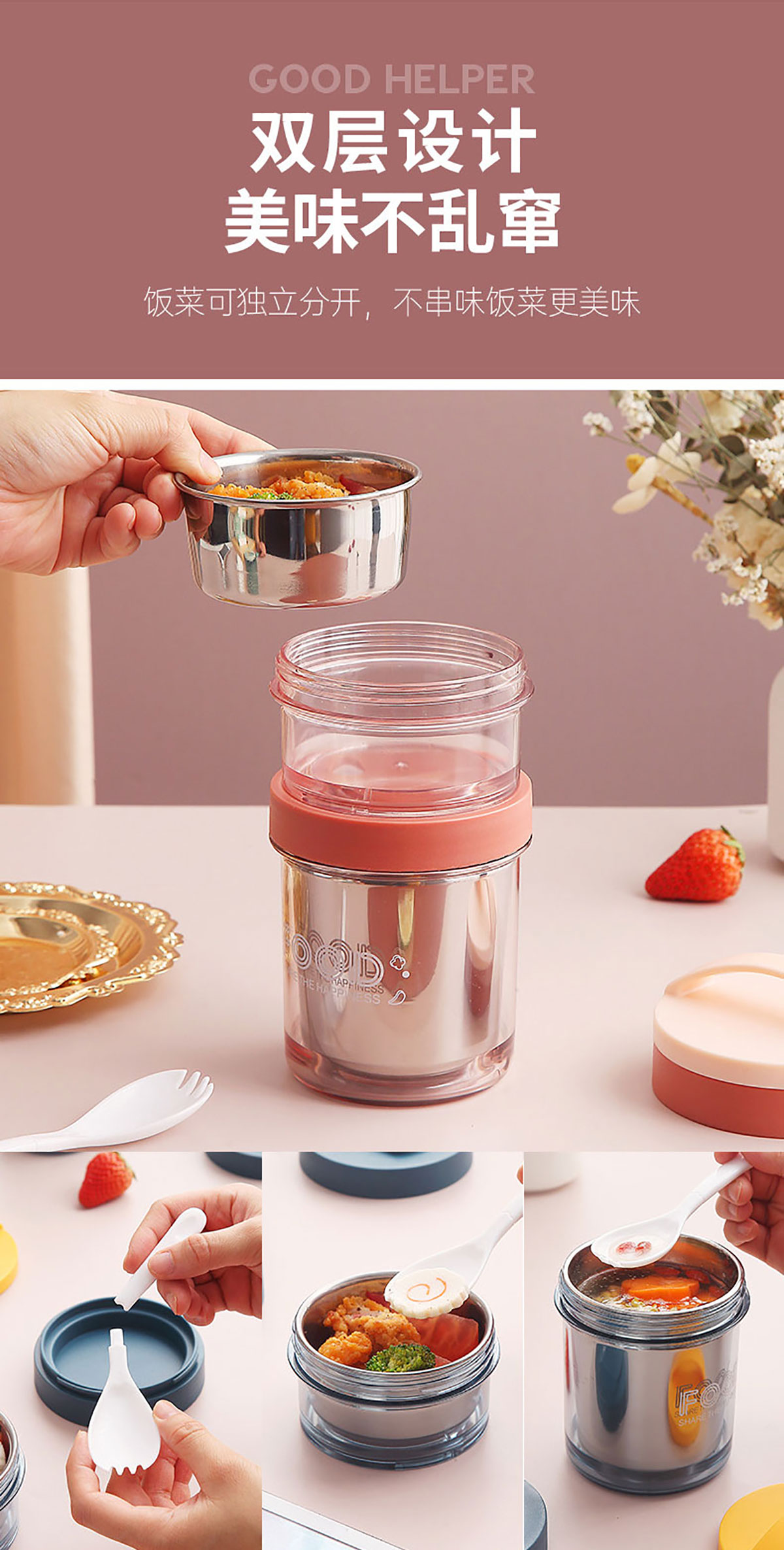 Stuff:內(nèi)膽304不銹鋼+外盒AS+勺蓋PP/彩盒