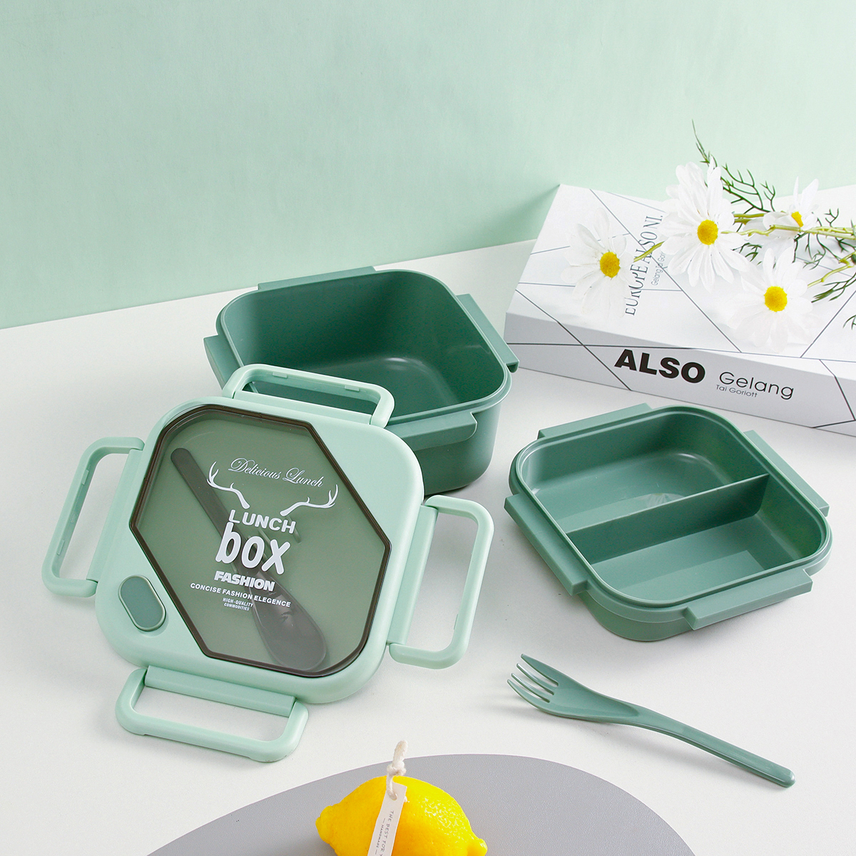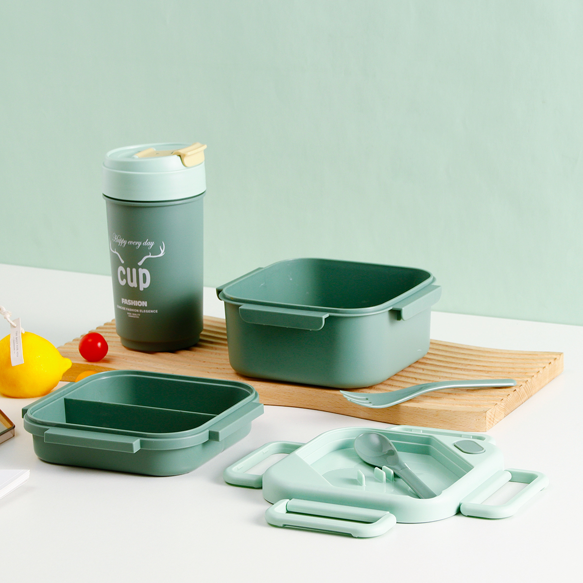 品悅正方單層/雙層密封飯盒+圓形/八角隨行杯