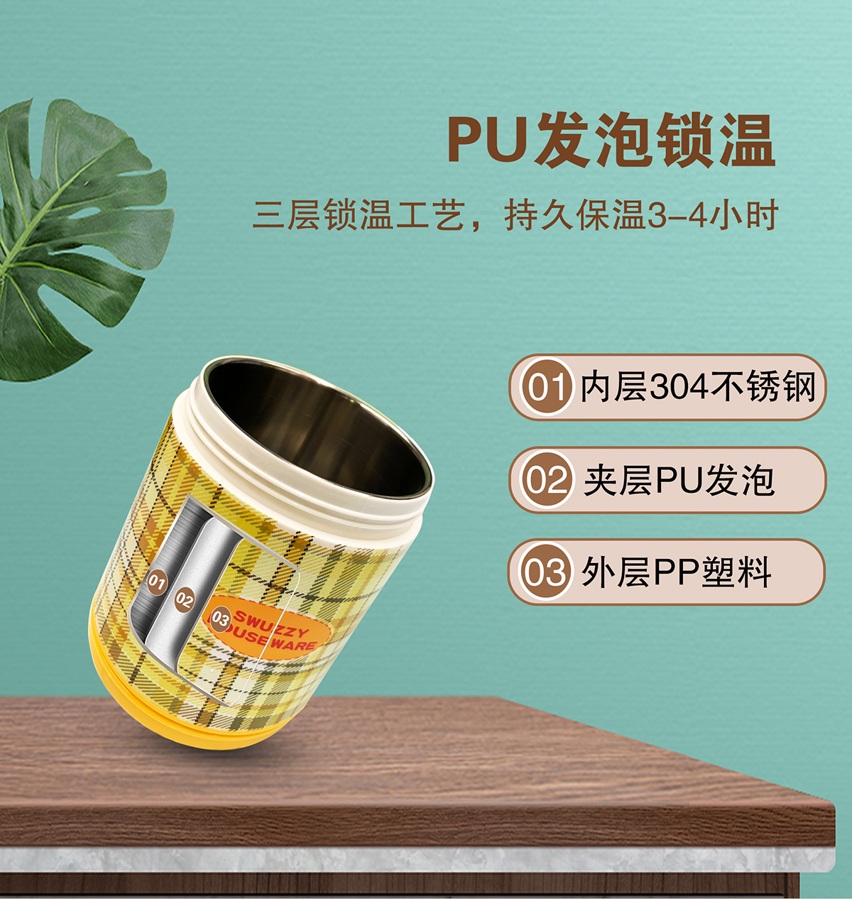 保溫瓶(全鋼內(nèi)膽)格紋680ml