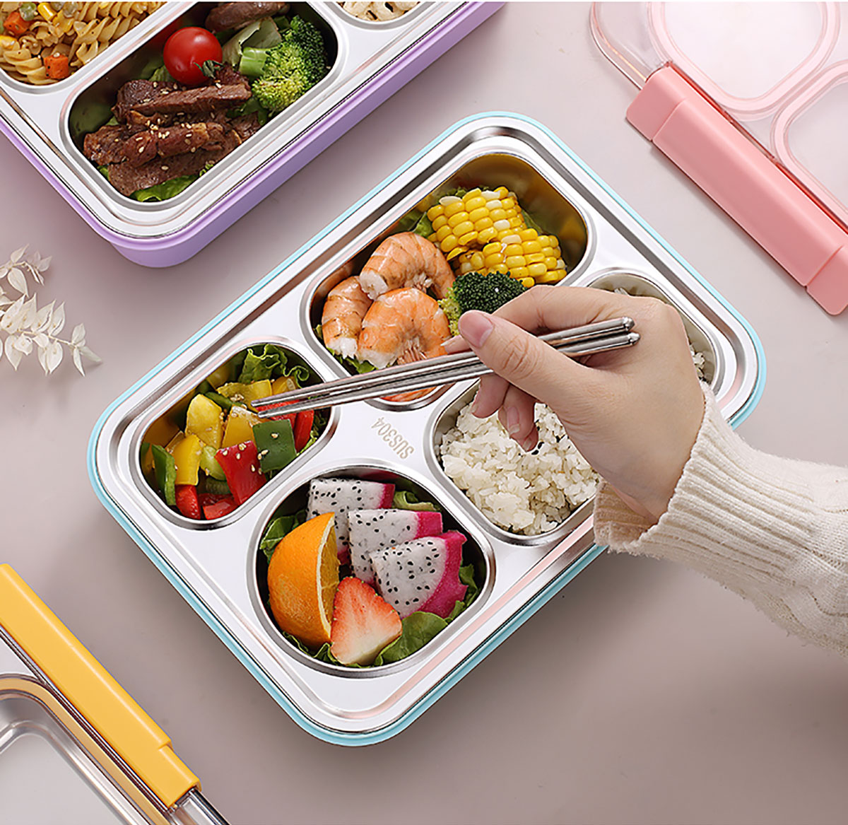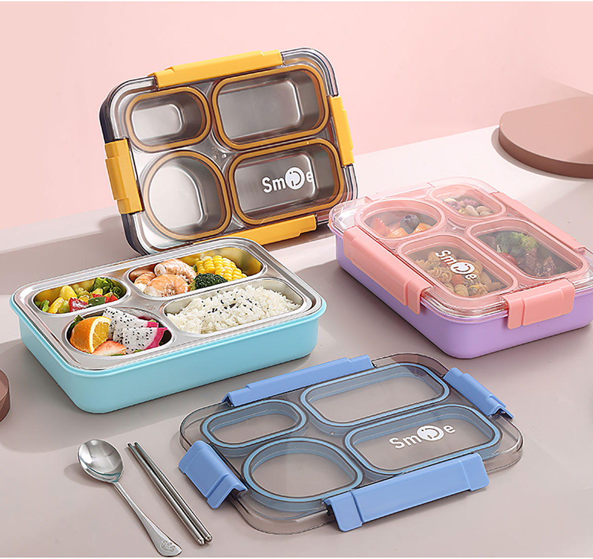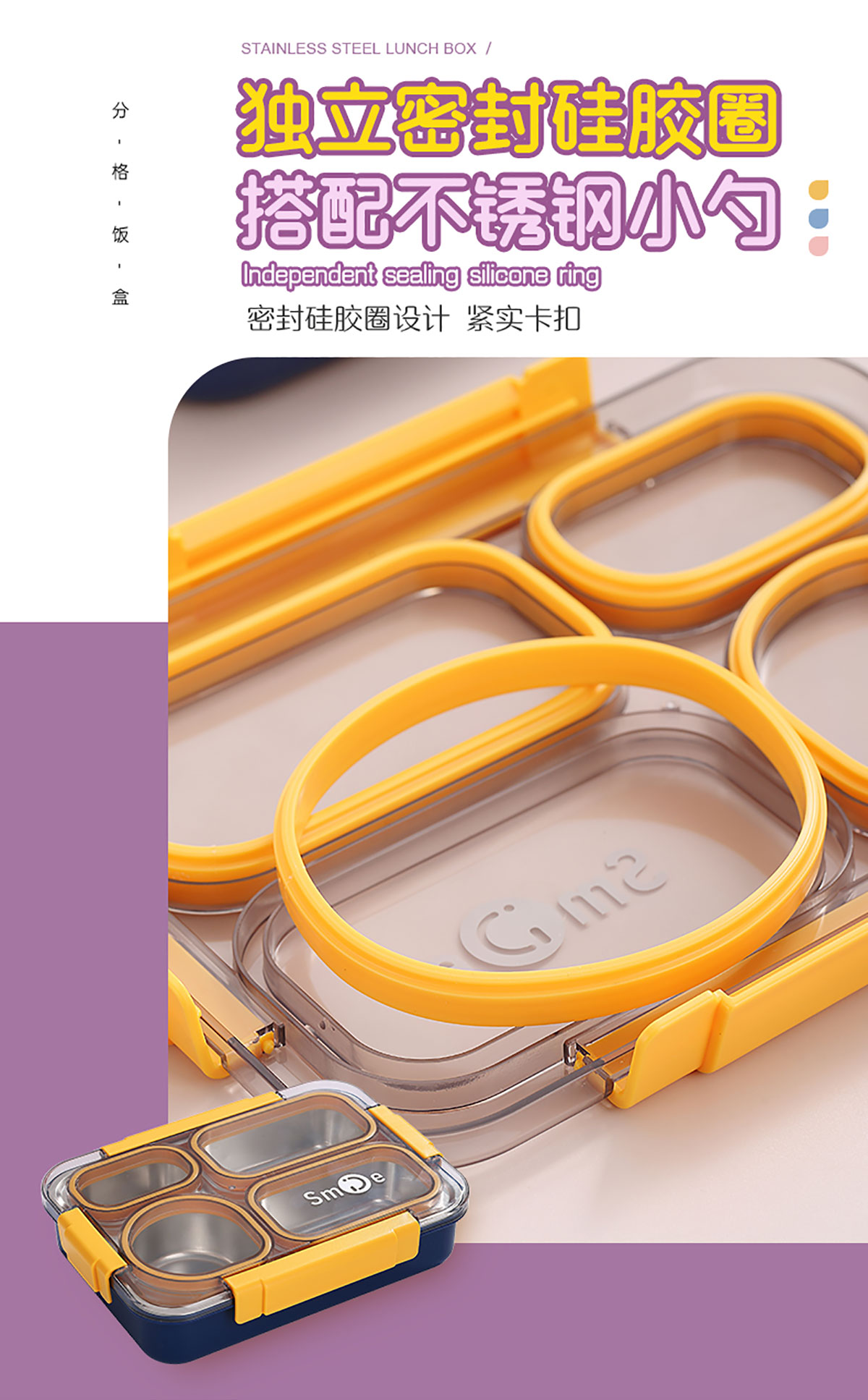 900ml獨(dú)立密封不銹鋼餐盒(4格+不銹鋼勺筷)