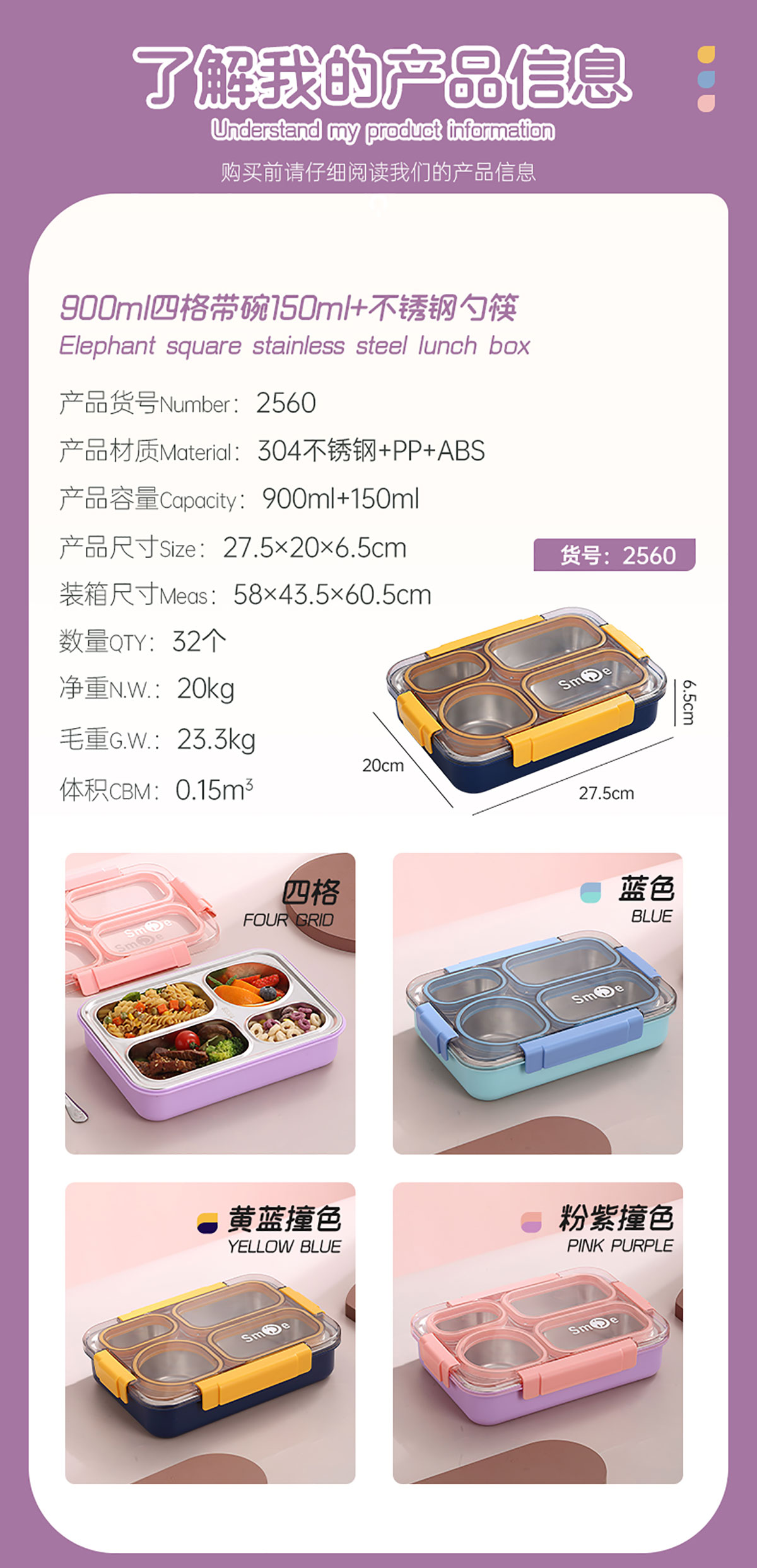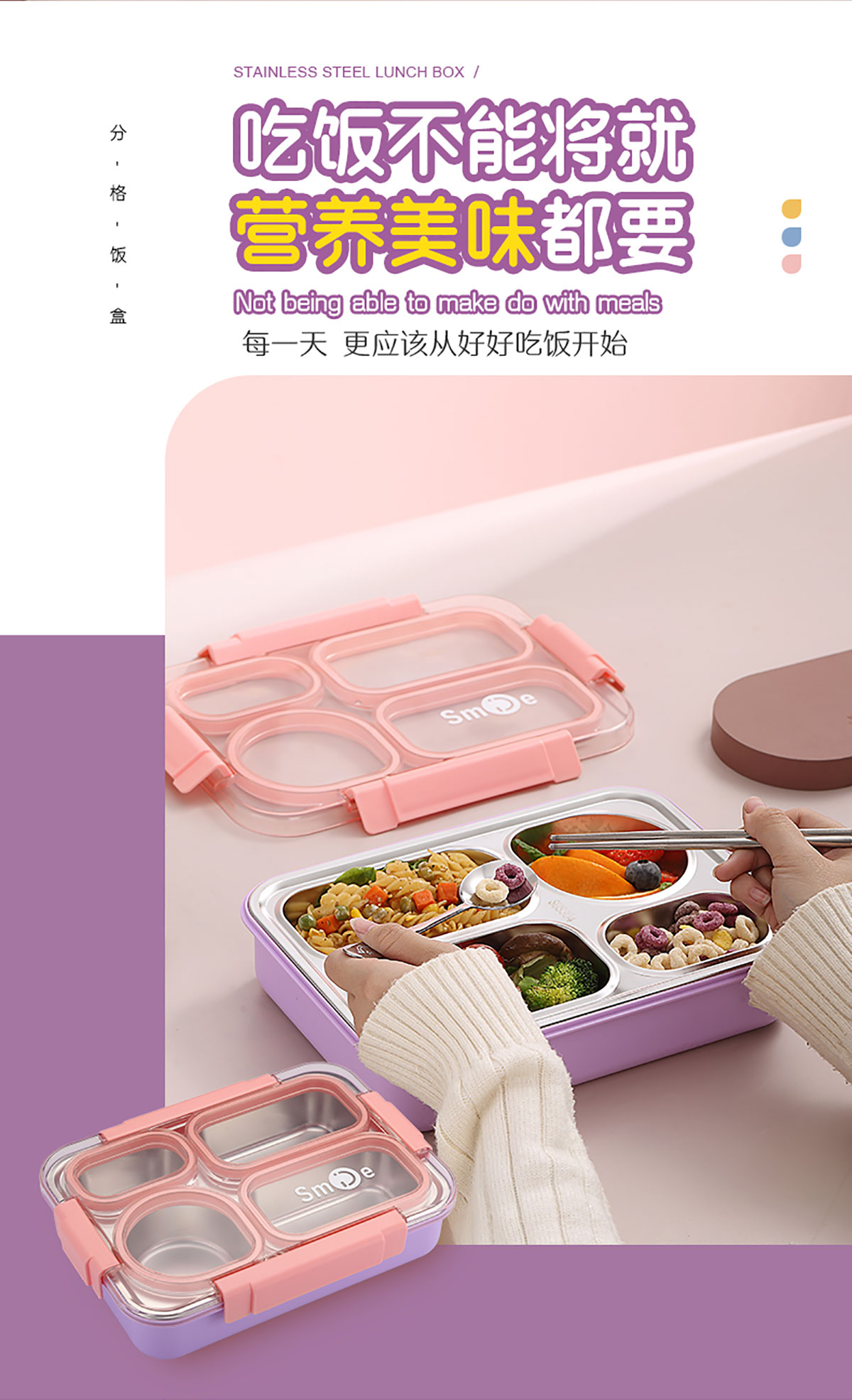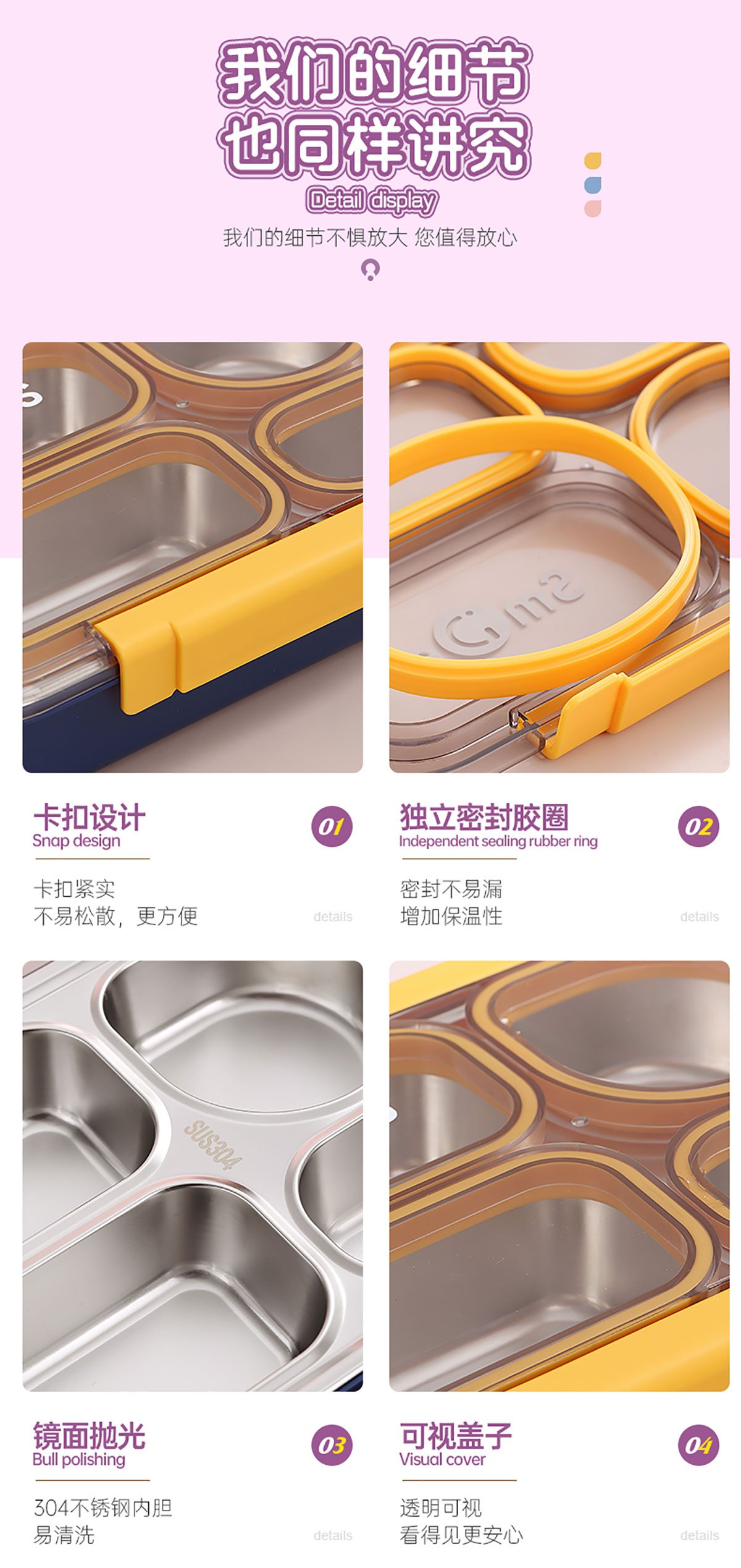 900ml獨(dú)立密封不銹鋼餐盒(4格+不銹鋼勺筷)
