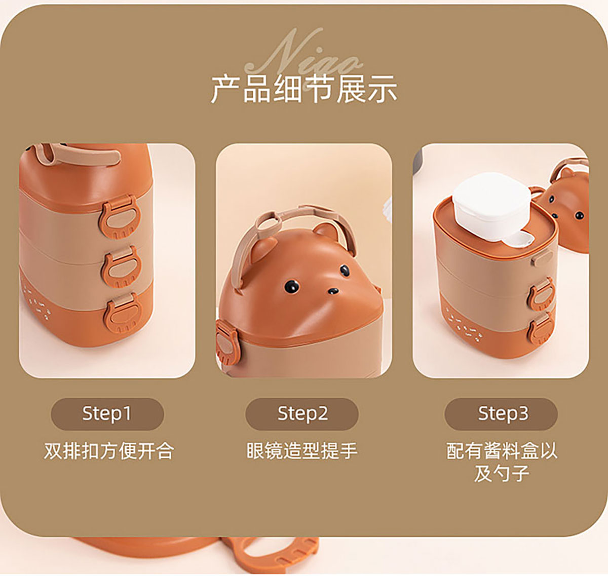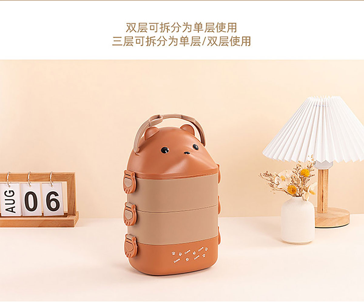 眼鏡熊長方形單層/雙層/三層飯盒 (帶內(nèi)格)