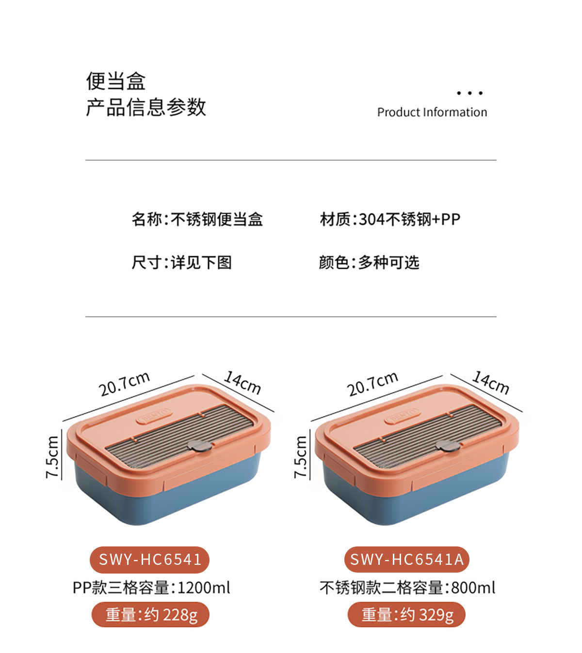 SWY-HC6541A(不銹鋼款):207*140*75mm/800ml