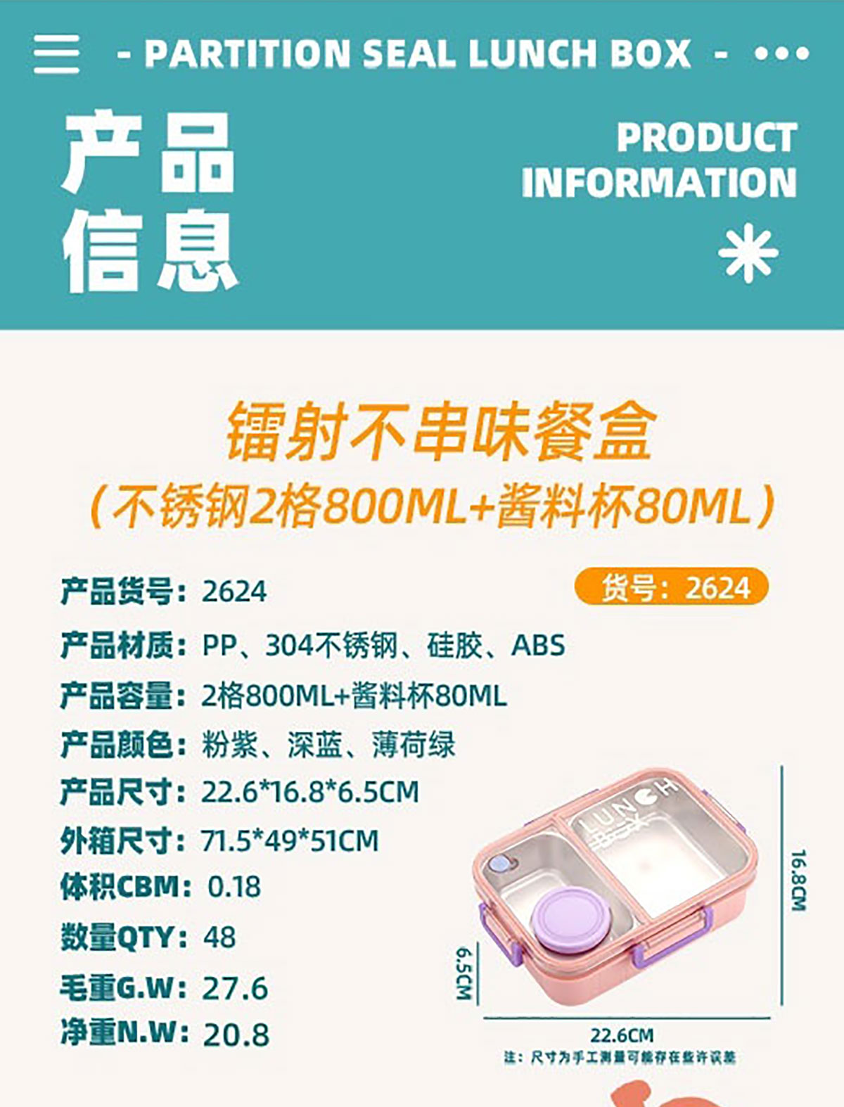 Size: AQX-2624(2格):226*168*65mm AQX-2625(3格):226*168*65mm
