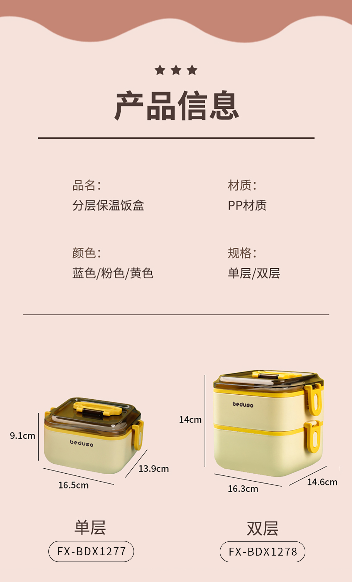 Size: FX-BDX1277(單層三格):165*139*91mm/1000ml