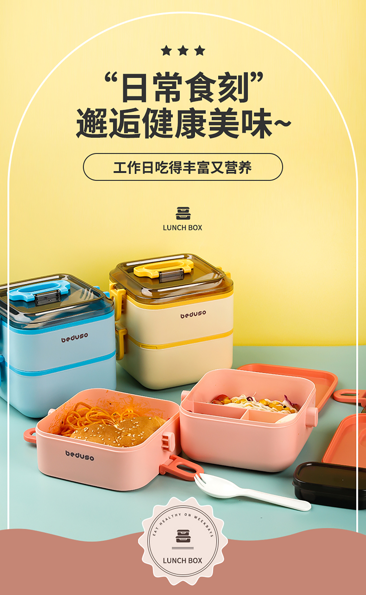 正方單層三格/雙層三格便當(dāng)盒