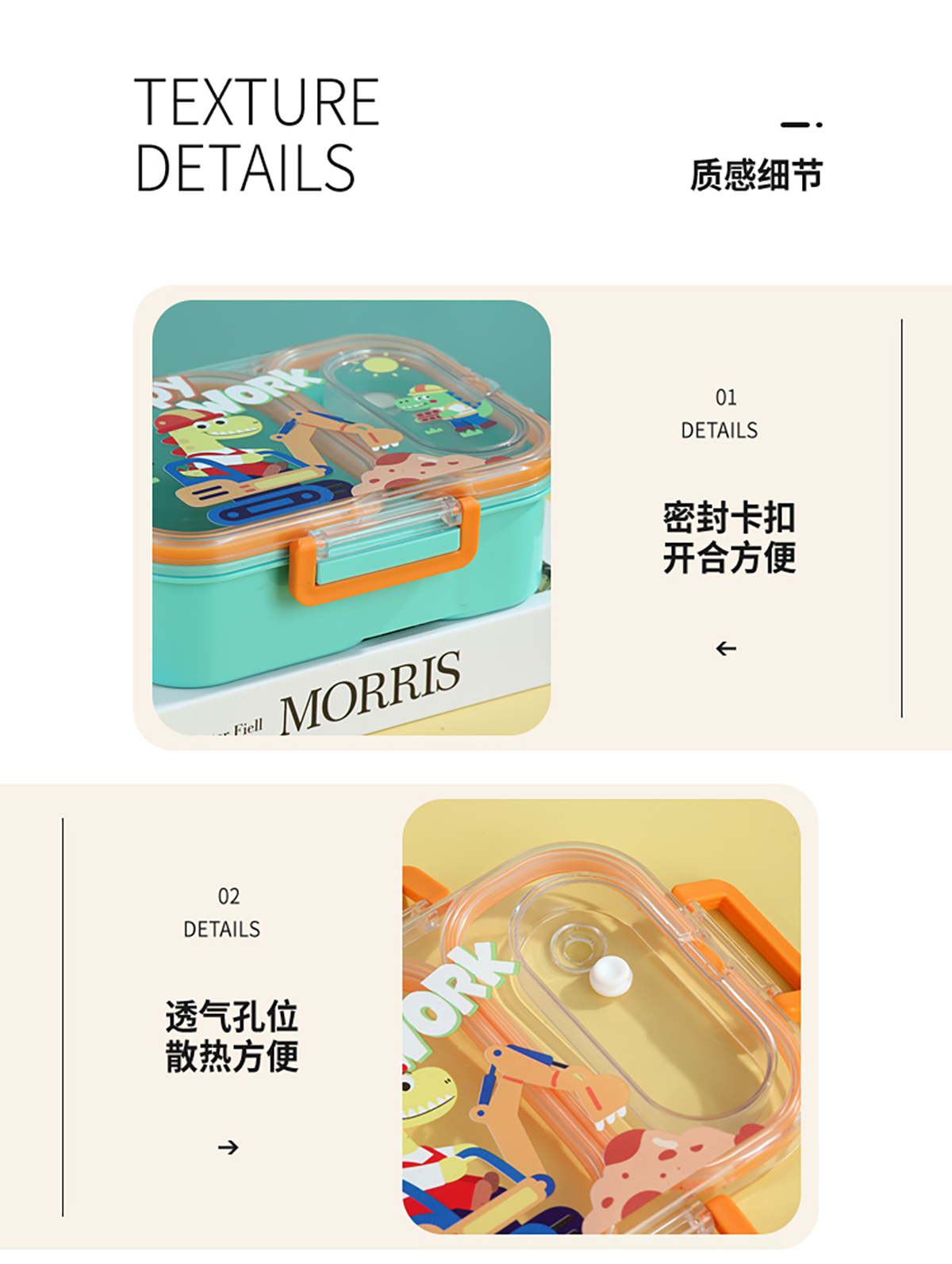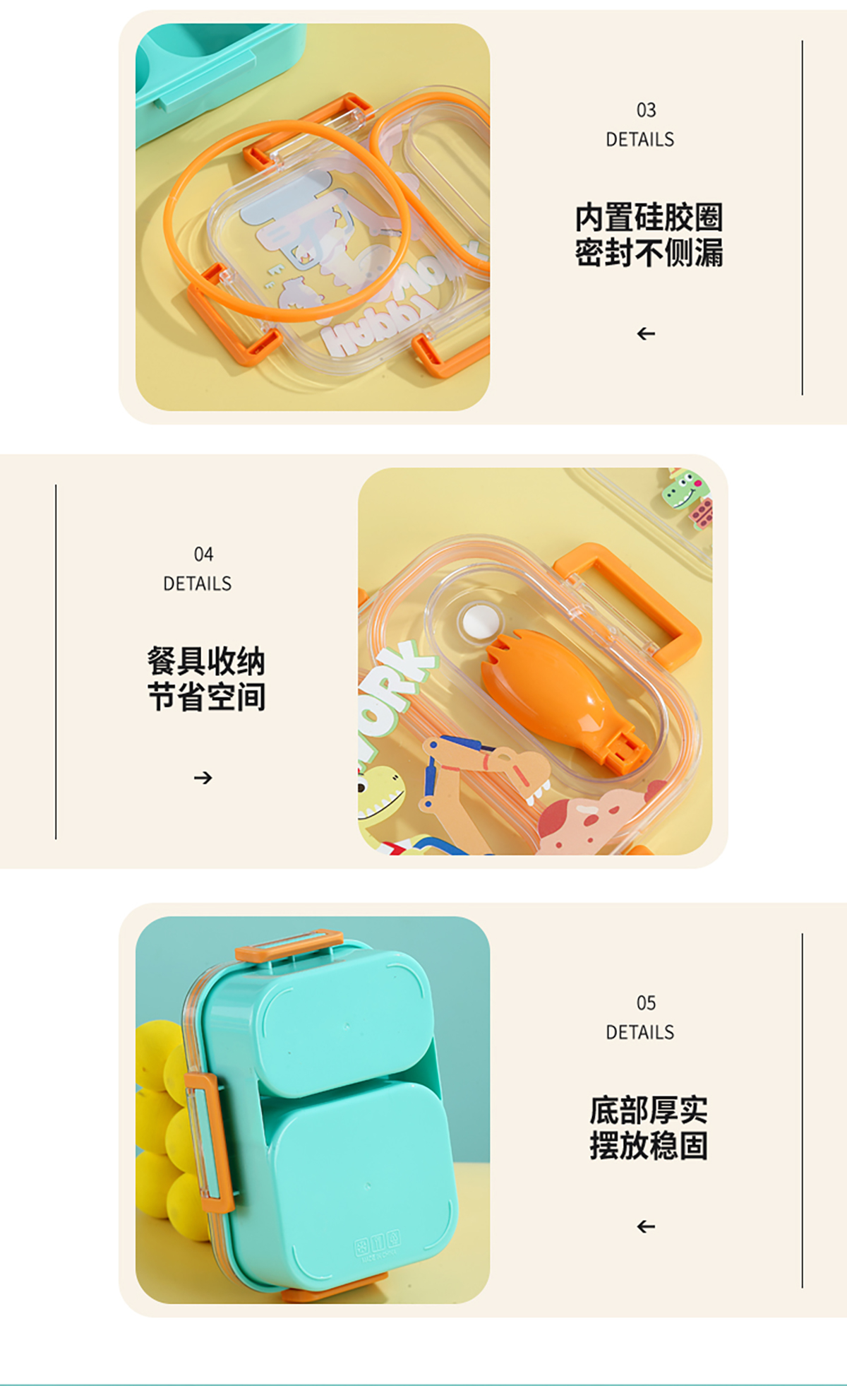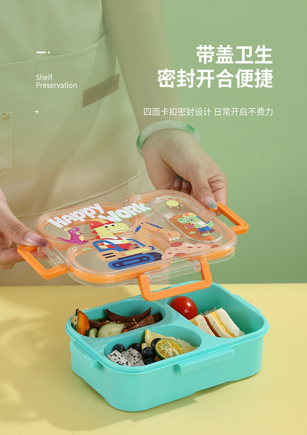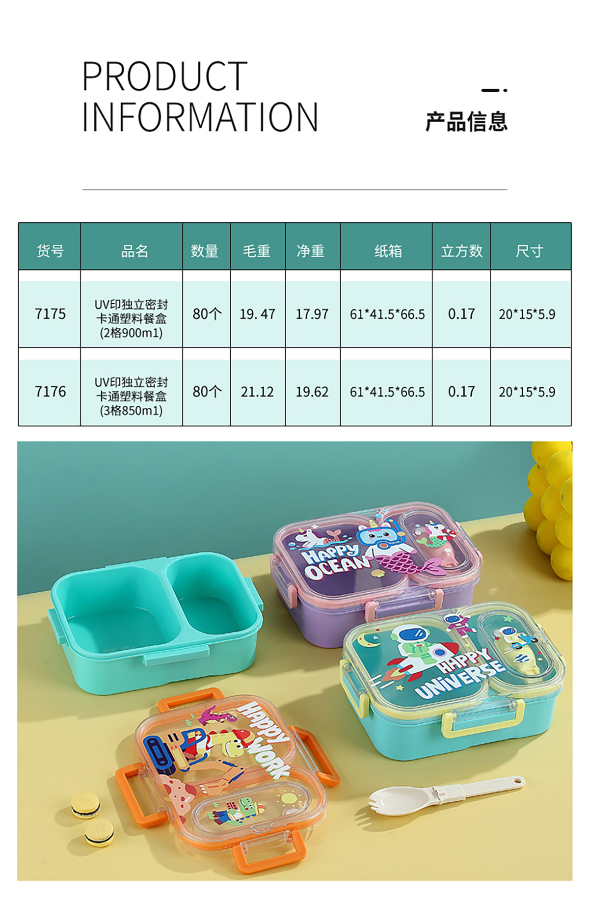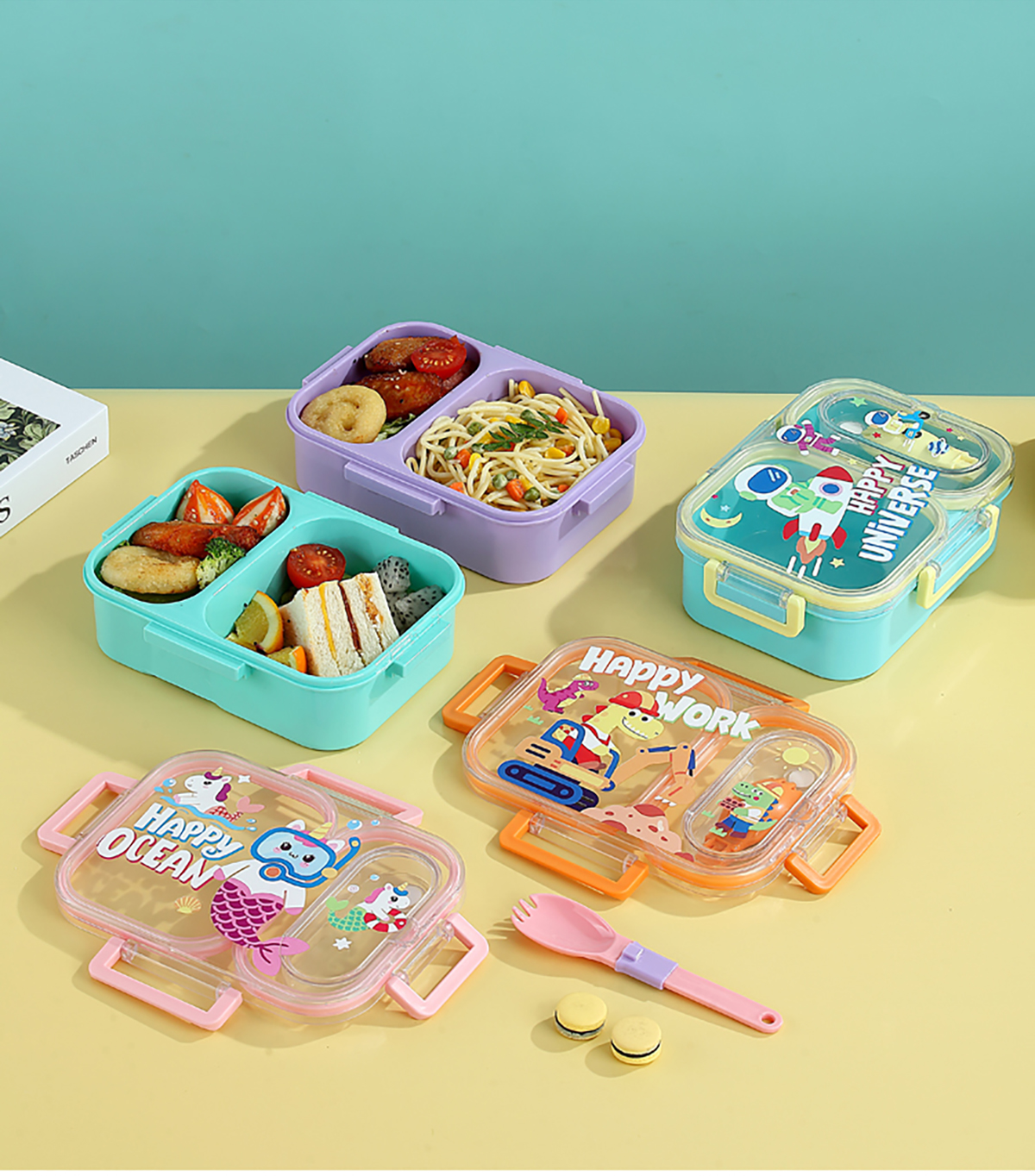 UV獨立密封卡通塑料餐盒2格900ml/3格850ml(配PP折疊湯勺)