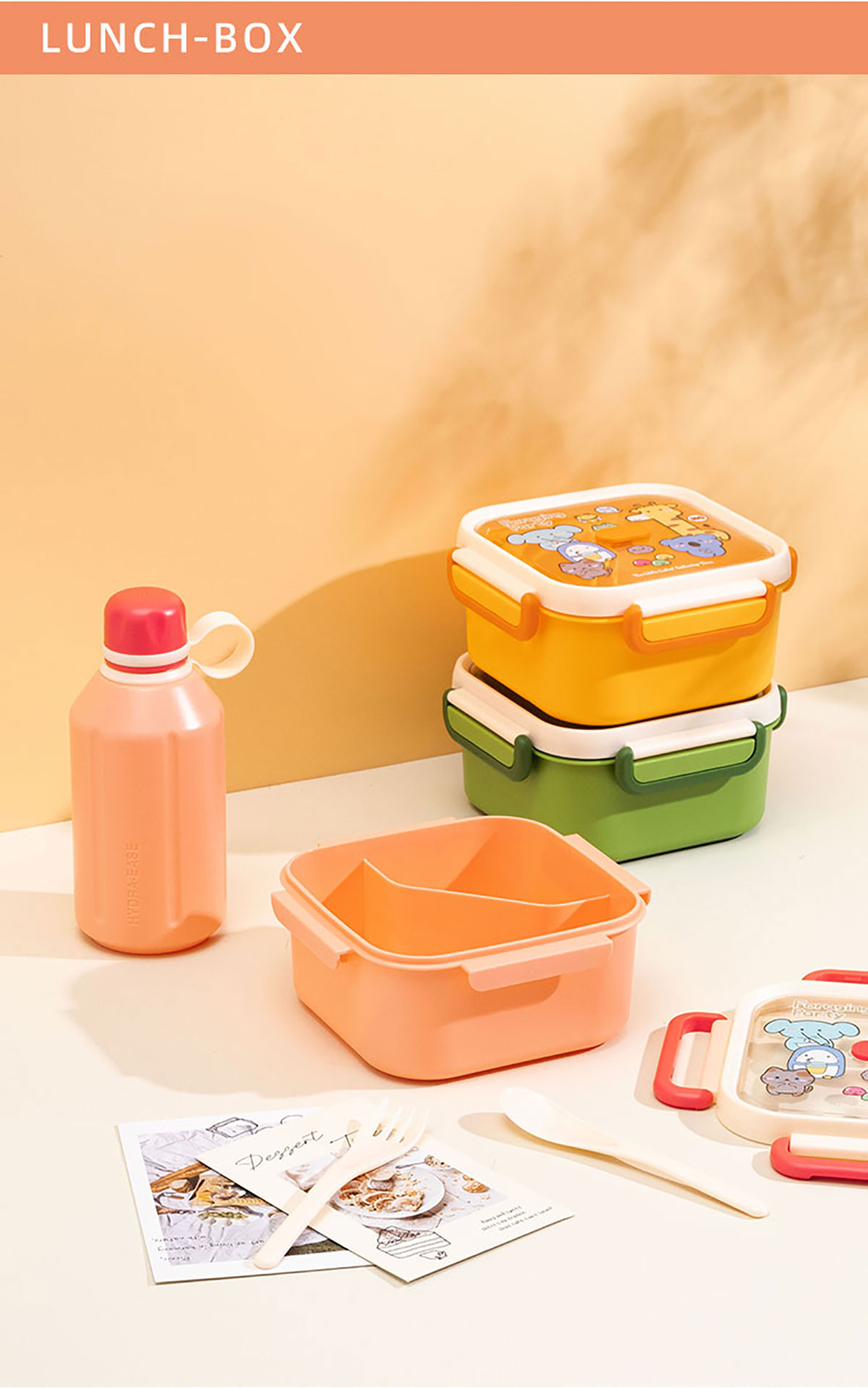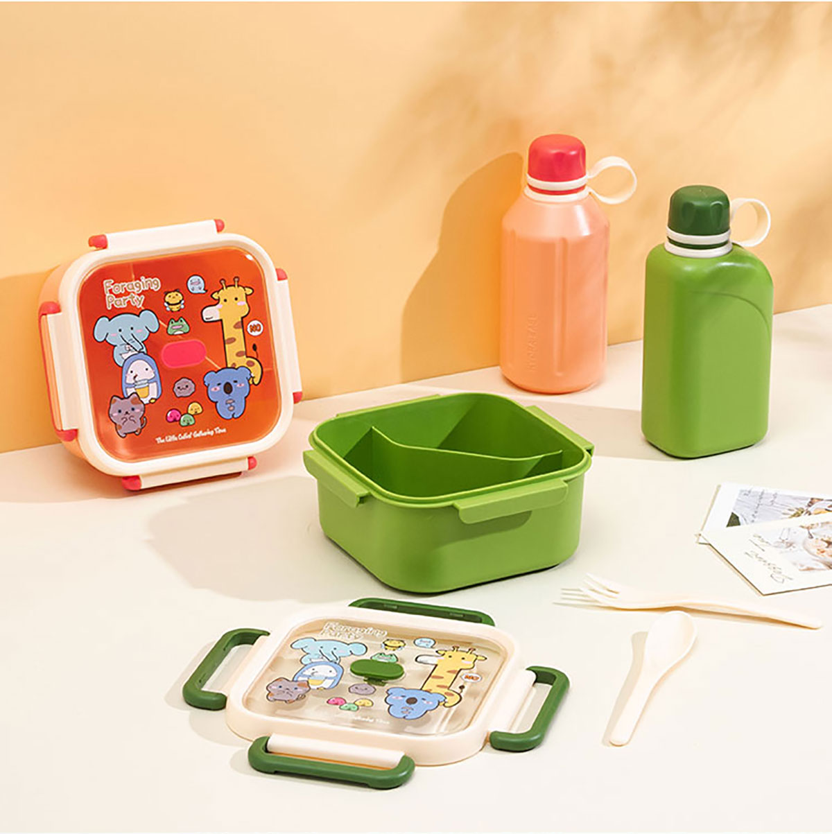 尚趣正方單層分格飯盒(1000ml)/+圓形/方形運動水壺(500ml)