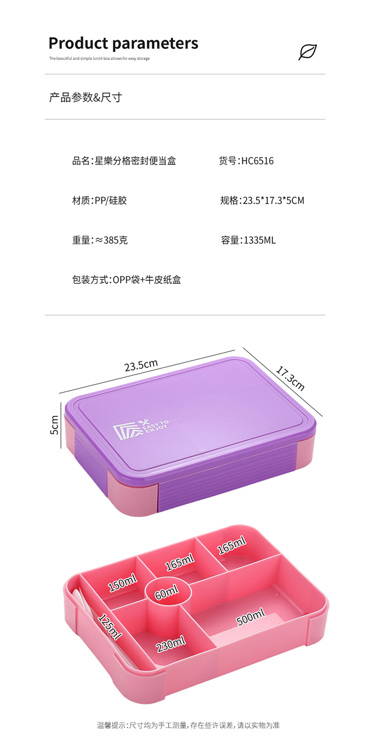 Size: 235*173*50mm/1335ml