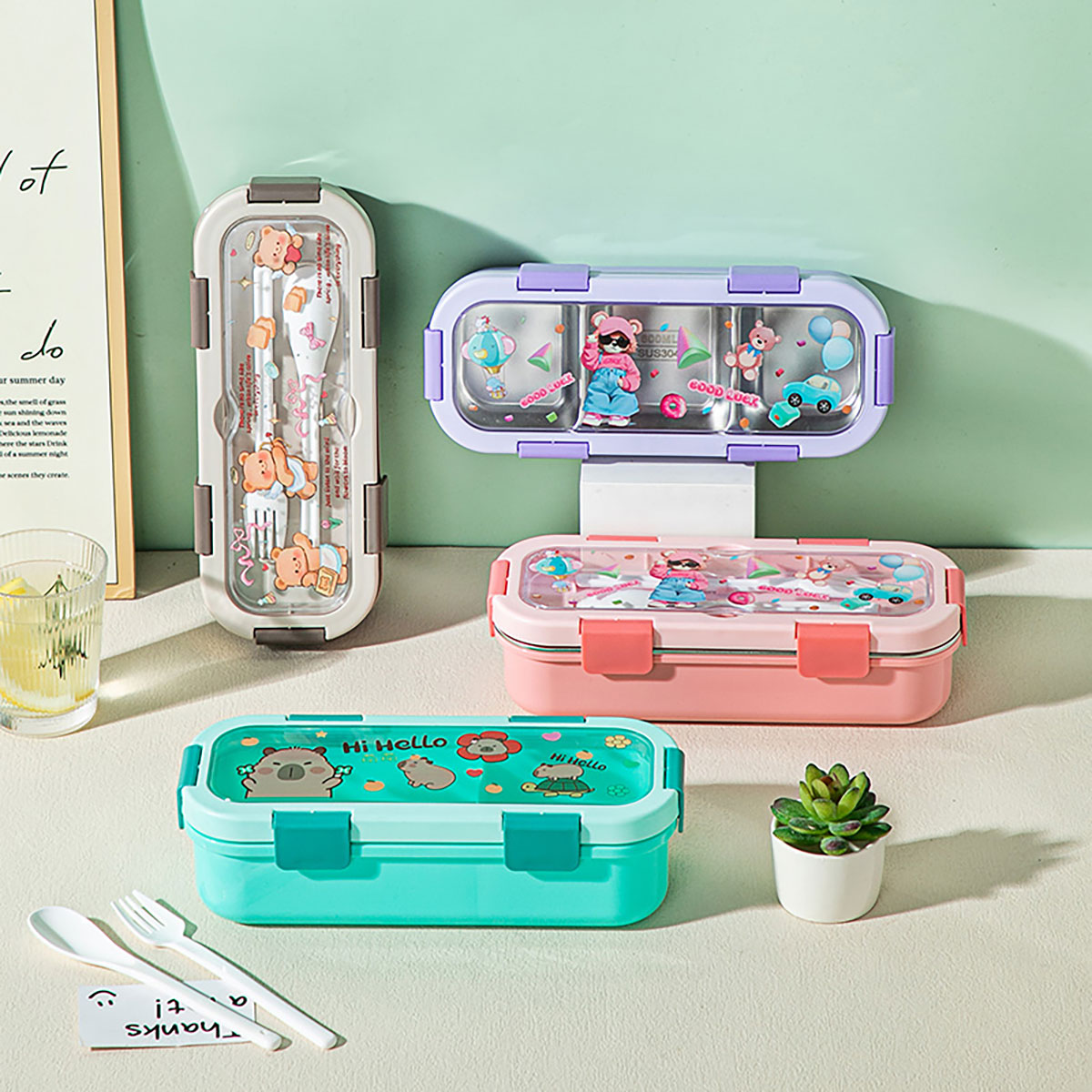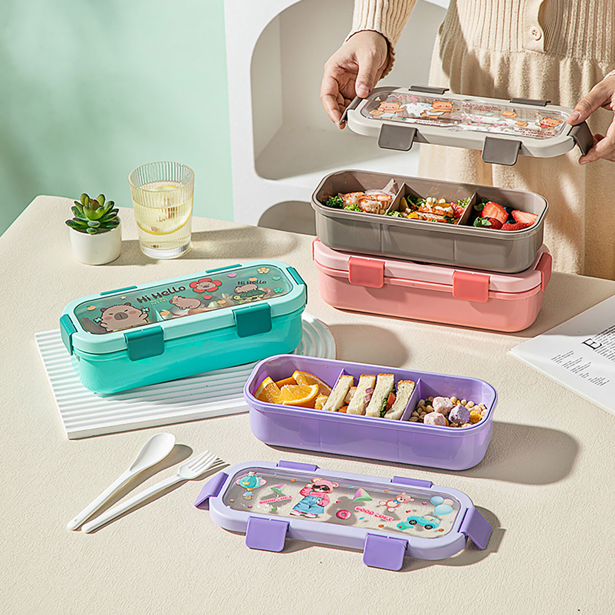 (印花款)愛悅長方形便當(dāng)盒兩格/三格可選 塑料款/不銹鋼款